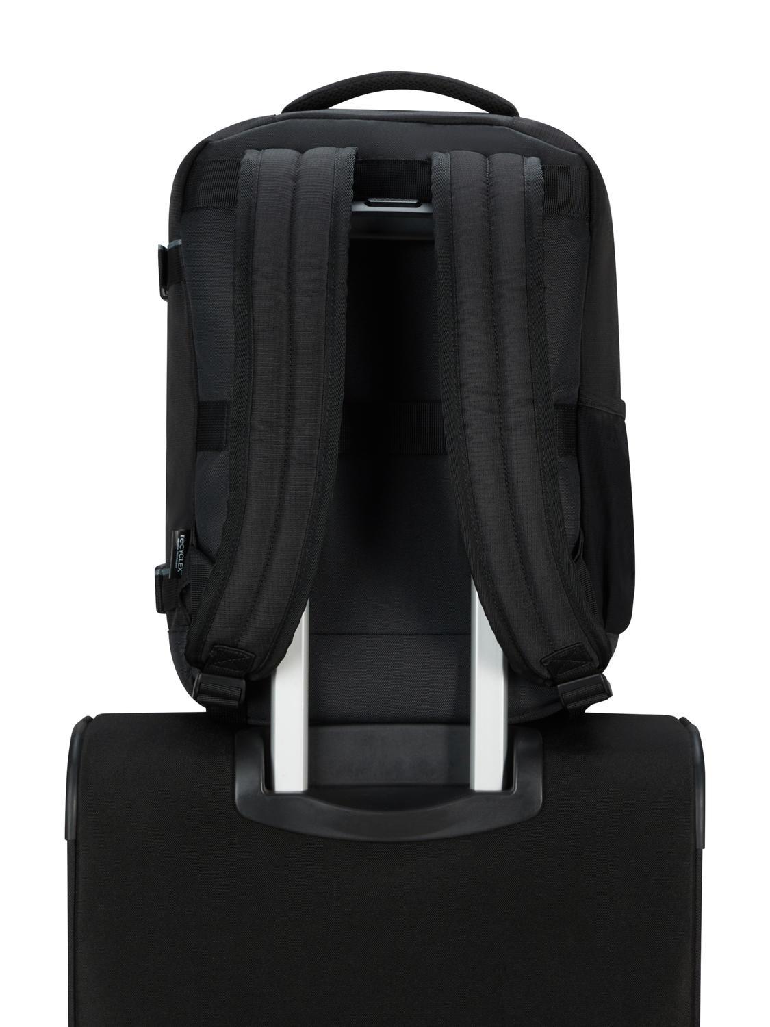 Si aggancia molto semplicemente sul trolley, per chi ha problemi a portare peso sulle spalle.
