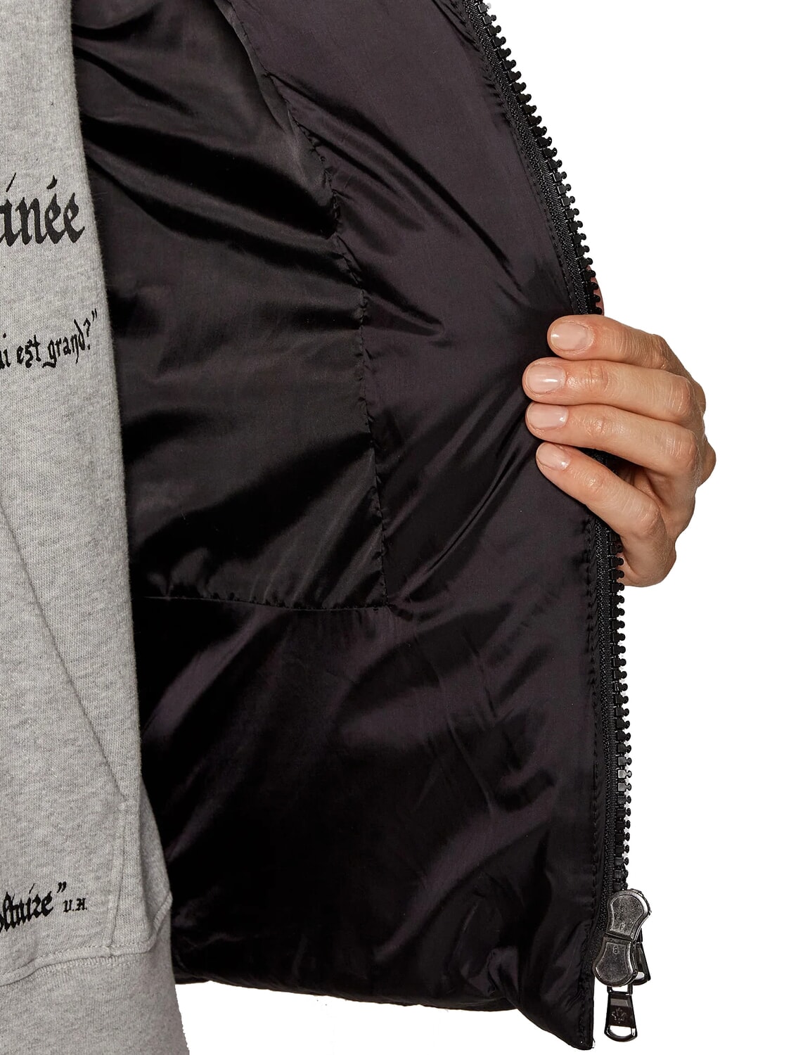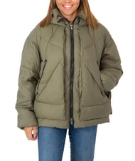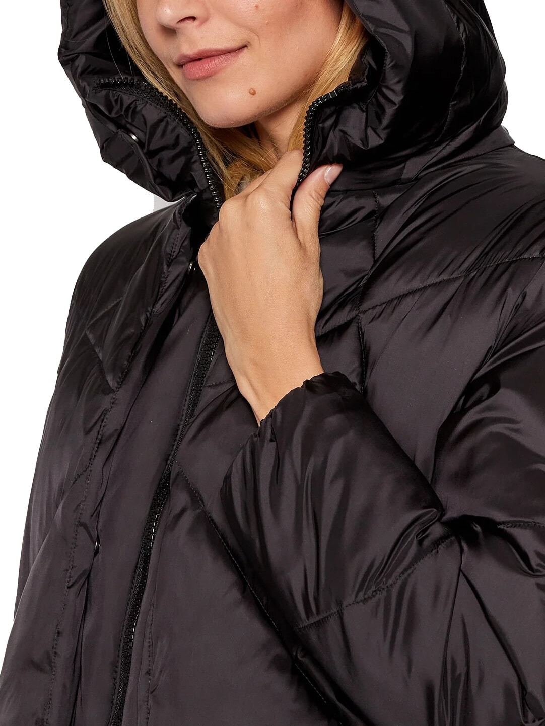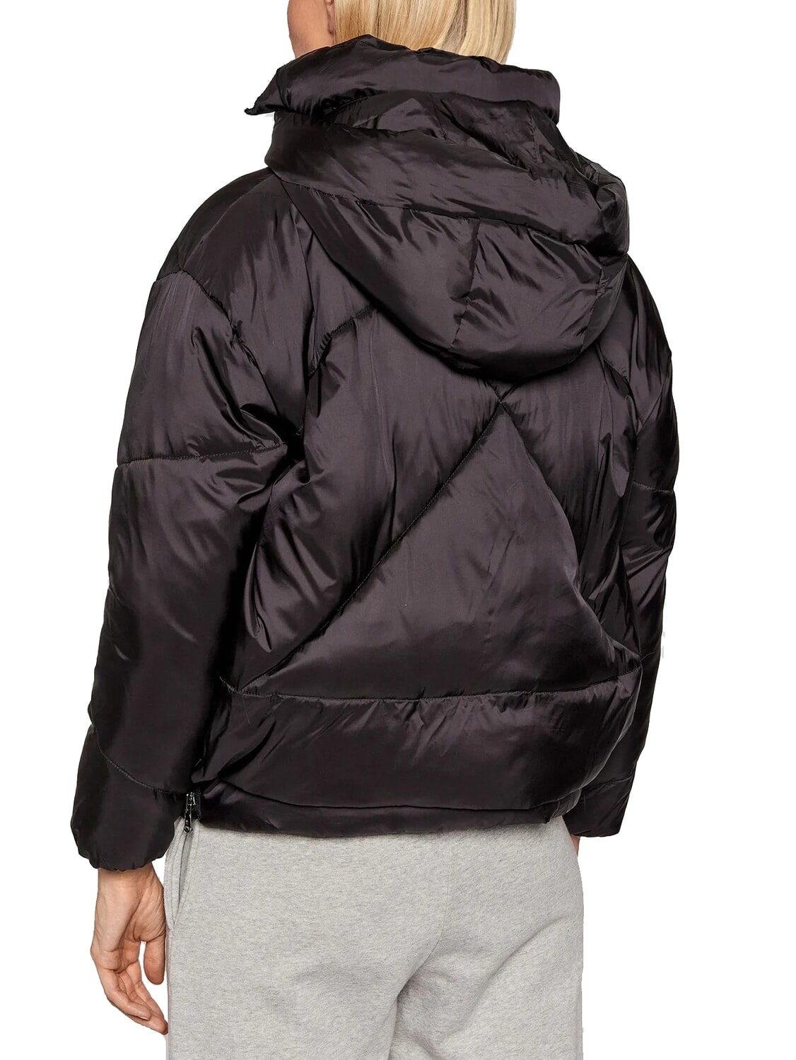 EUGENIE Jachetă scurtă din satin cu puf și glugă
