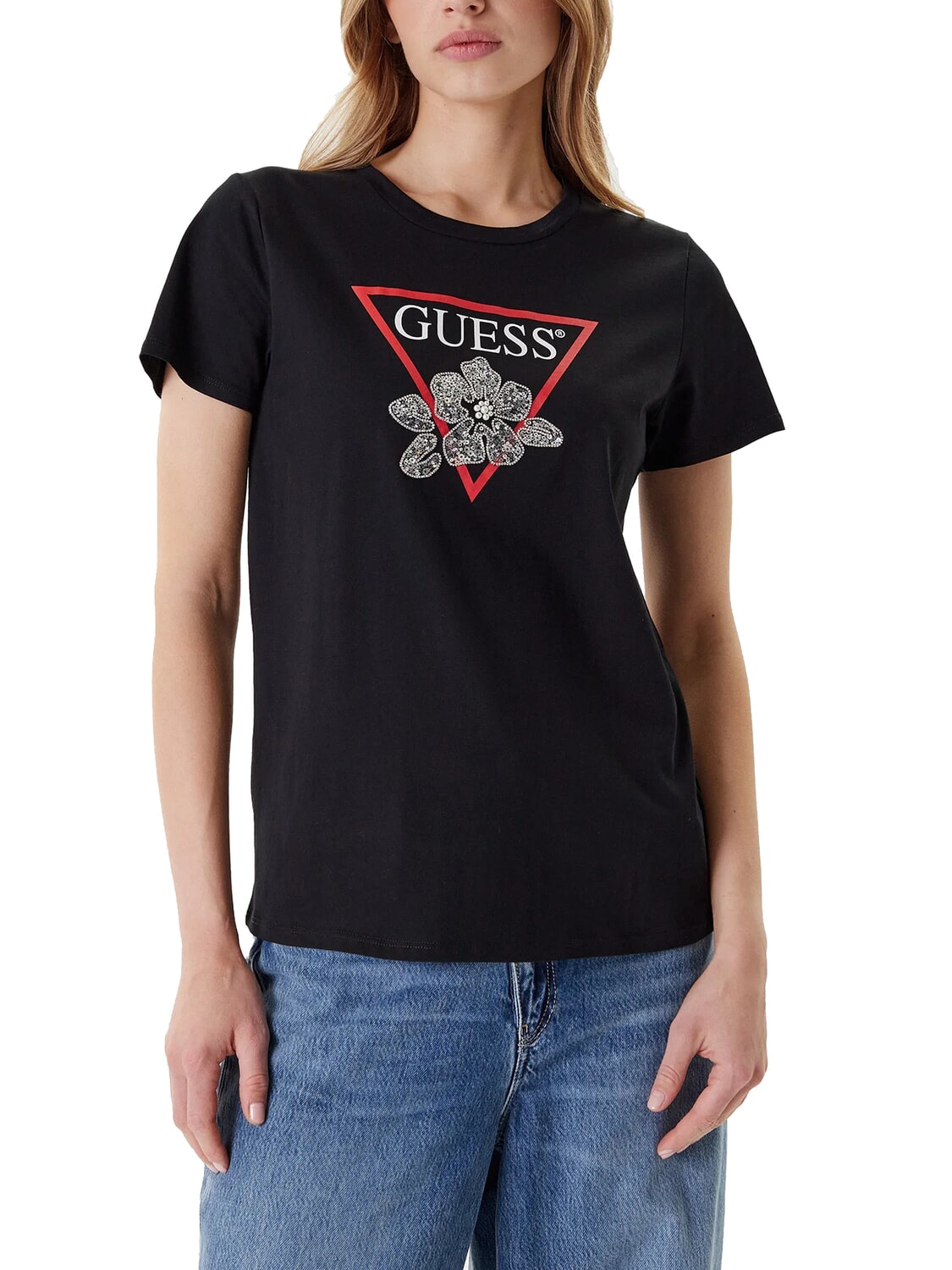 FLOWER BLING Tricou cu imprimeu și aplicație