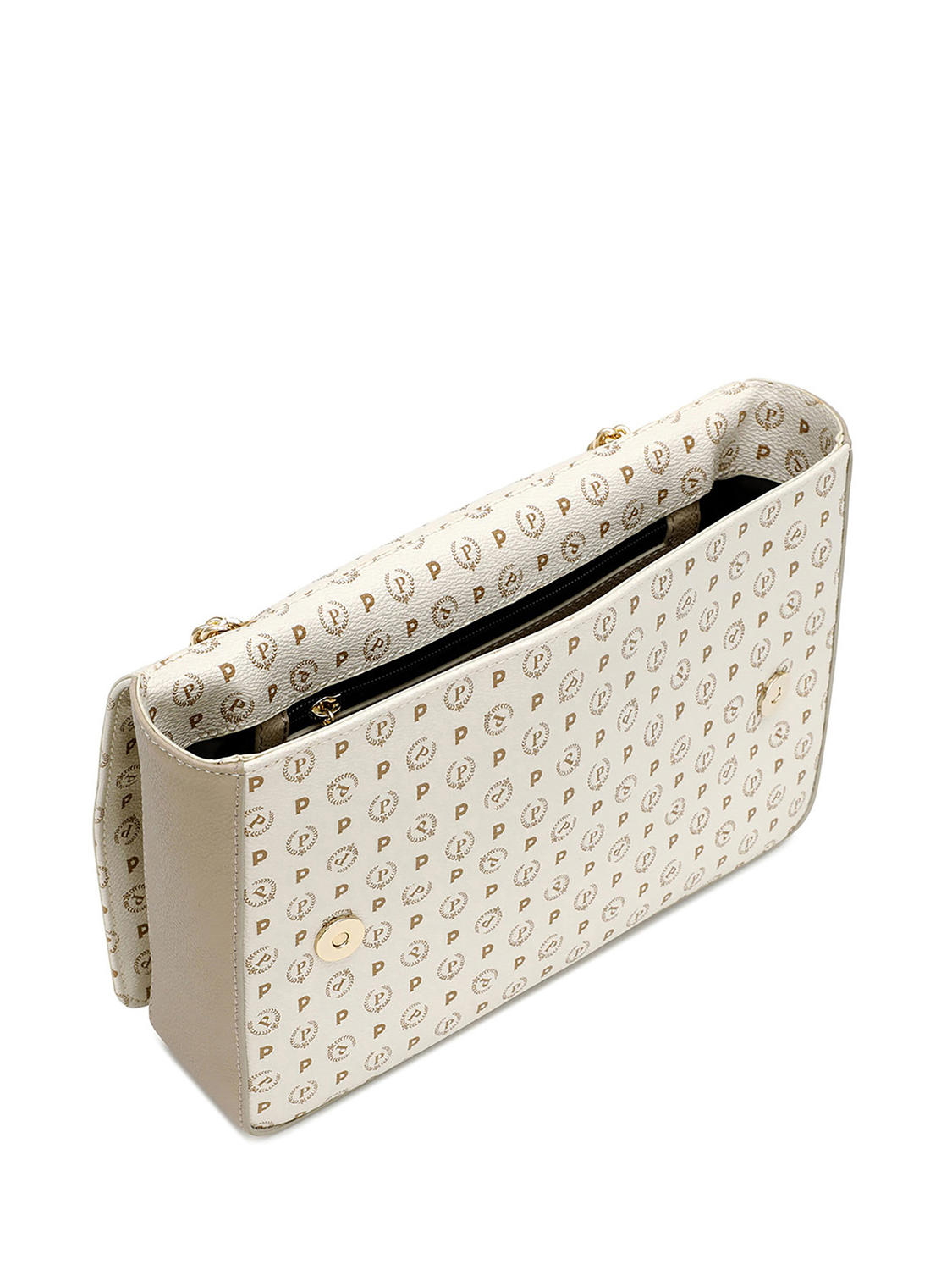- Geantă de umăr din PVC cu inserții din piele contrastante