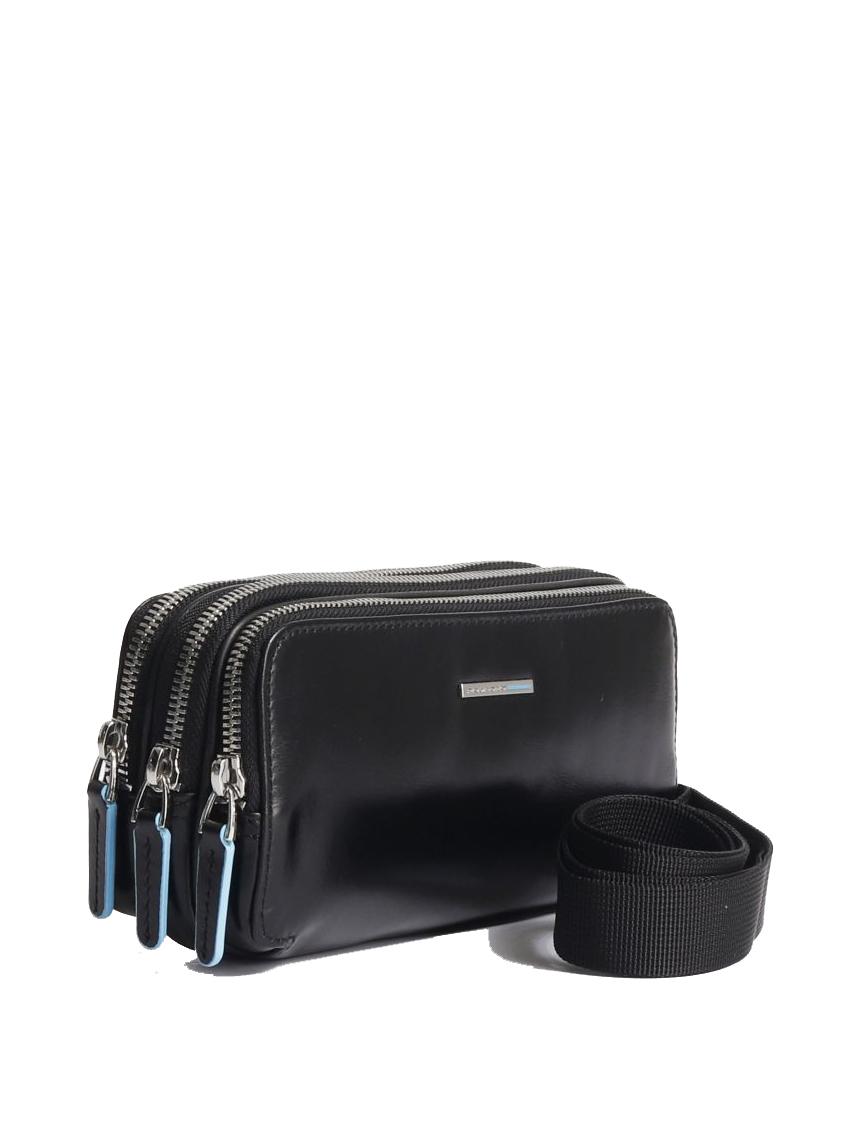 BLUE SQUARE Geanta mini din piele cu 3 fermoare