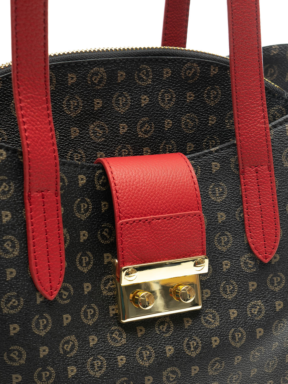 - Limba frontală din piele cu ambreiaj din metal auriu