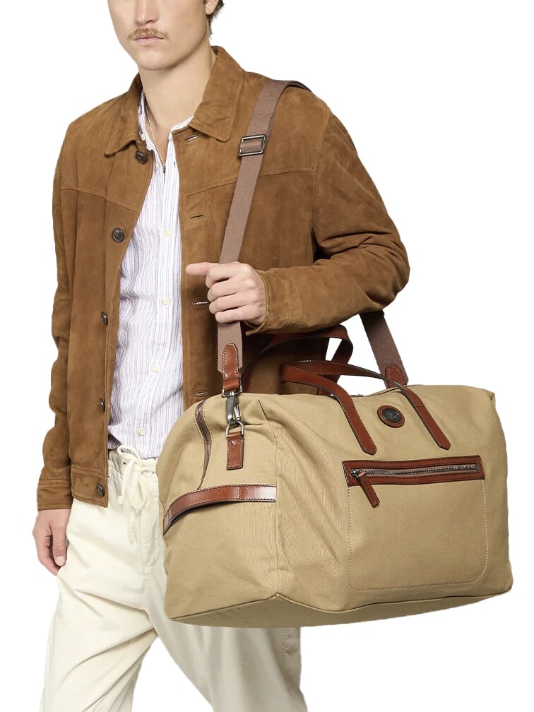 STORY Geantă duffle medie din piele și material textil