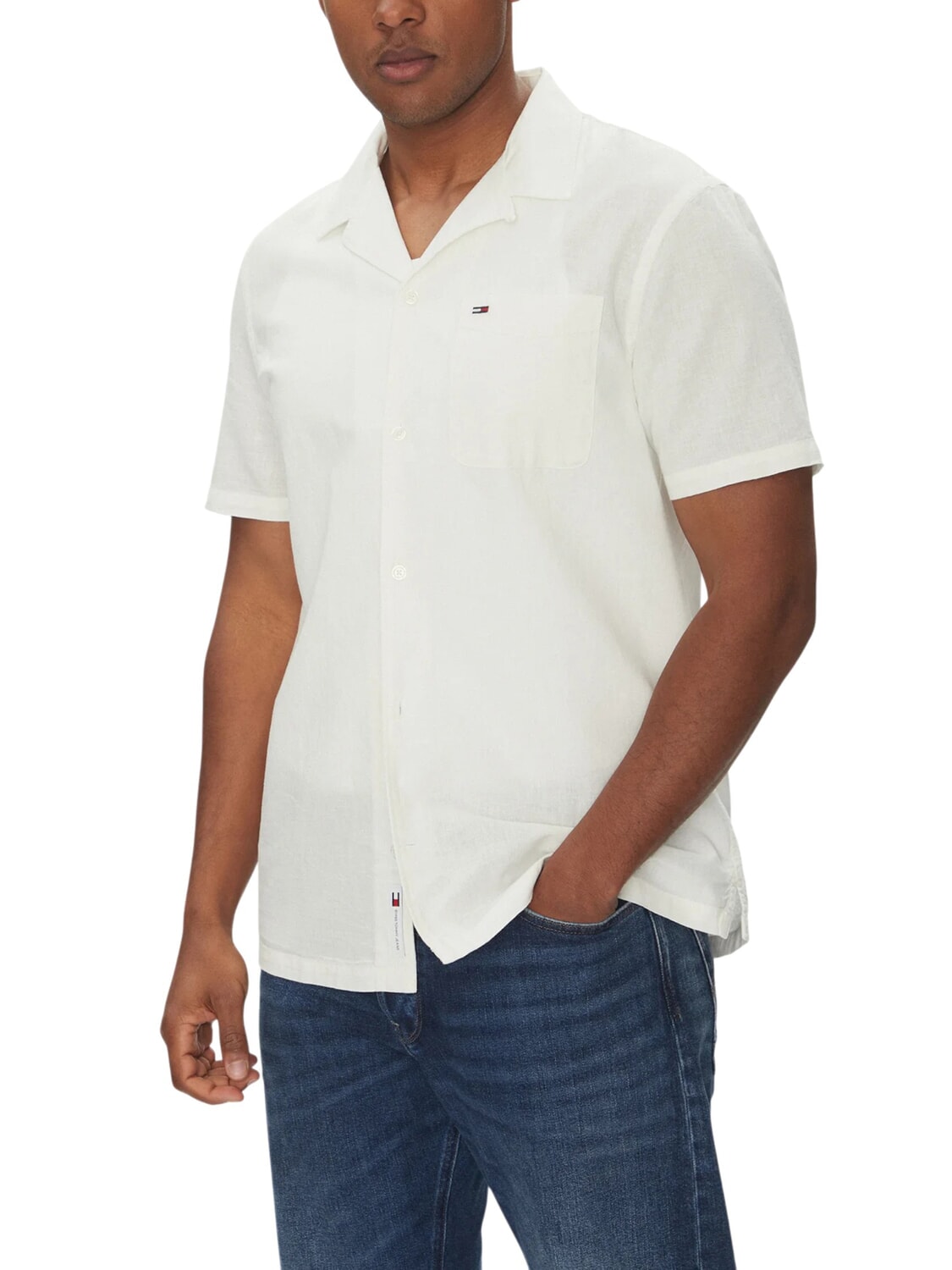 TH JEANS Cămașă cu mânecă scurtă din in și bumbac