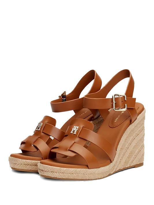 TH Sandale cu pană espadrile înalte din piele