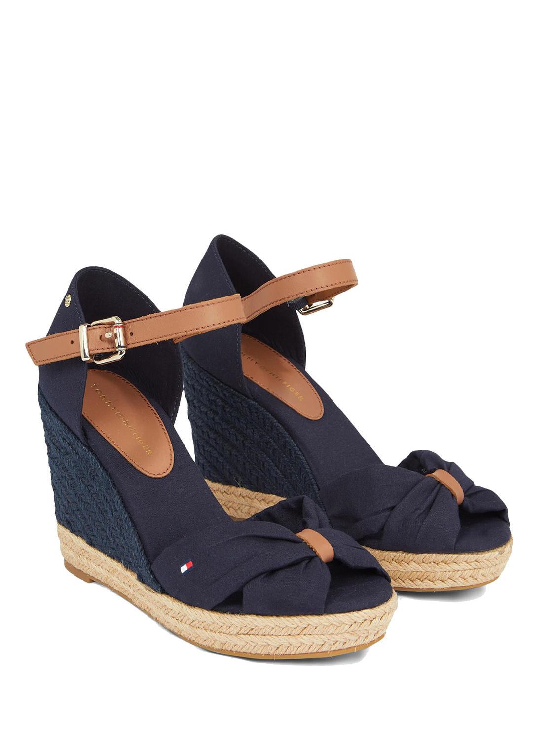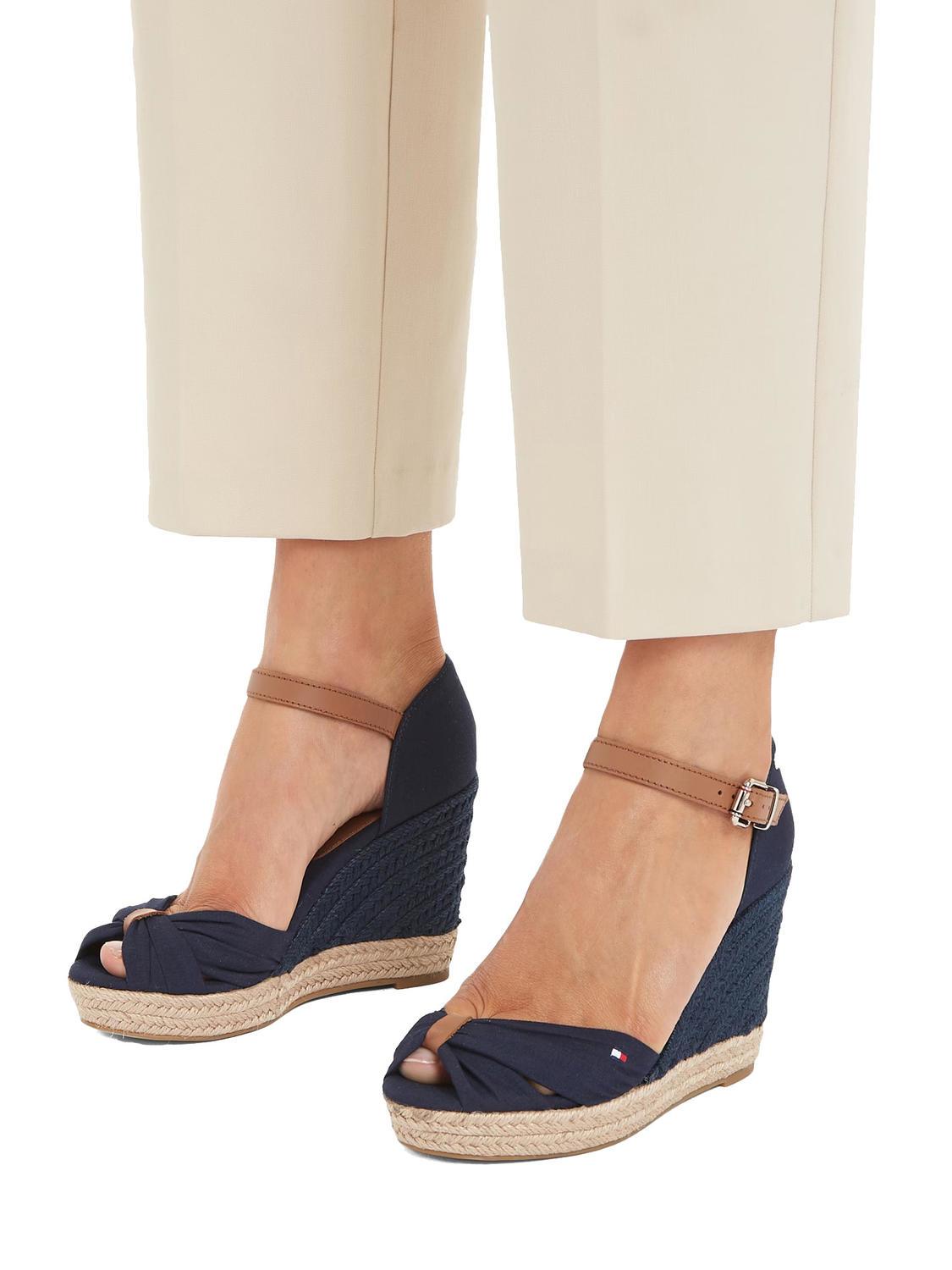 - Sandale deschise cu vârf înalt în material textil, cu detalii din piele